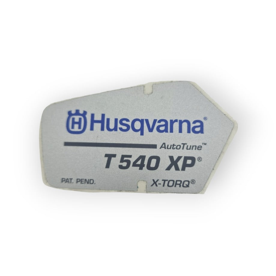 Decal label for the clutch cover on the Husqvarna T540 XP Autotune.